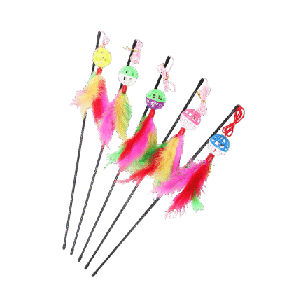 Premium Cat Toy Teaser Stick with Ball, Bell & Feather