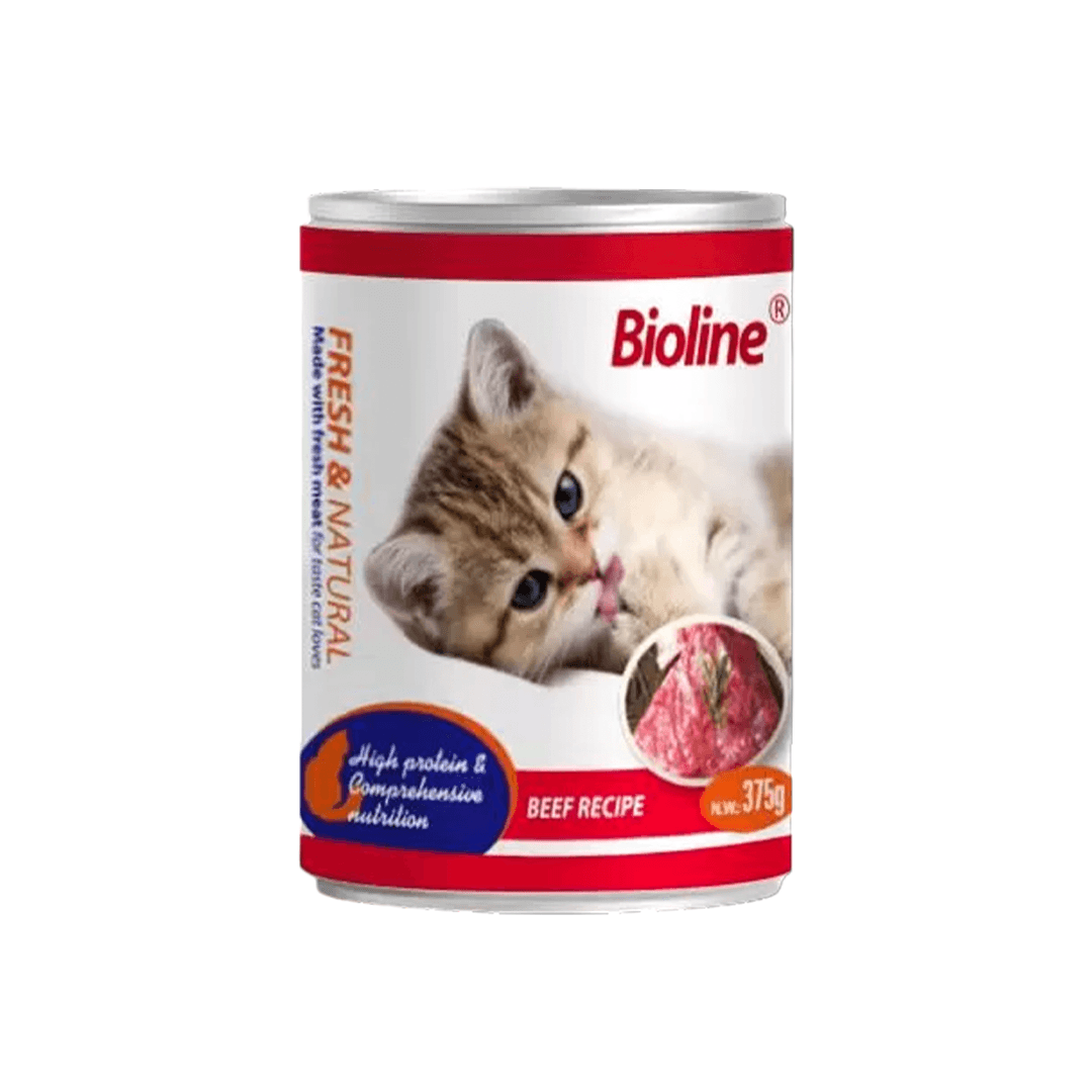 Home Cat Food Cat Canned Food Bioline Canned Food for Cats Beef Recipe 375g