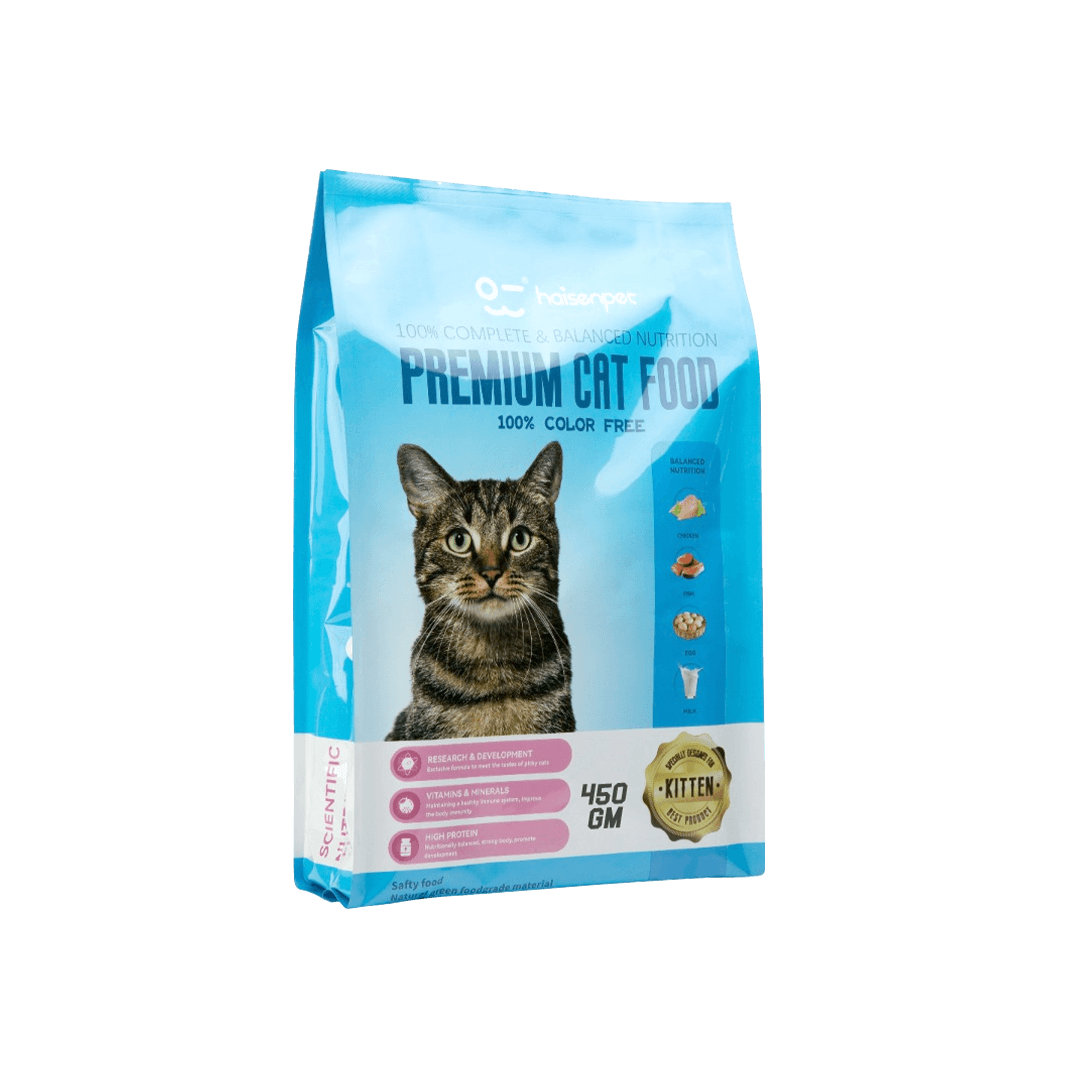 Home Cat Food Kitten Dry Food Haisenpet Premium Kitten Food Chicken, Fish, Egg & Milk 450gm