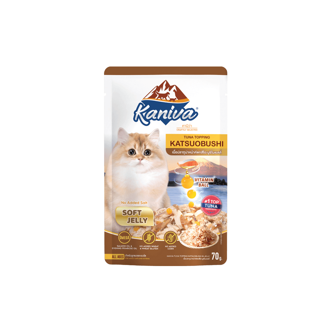 Kaniva Tuna Topping Katsuobushi Pouch 70g Soft Jelly for Adult & Kittens