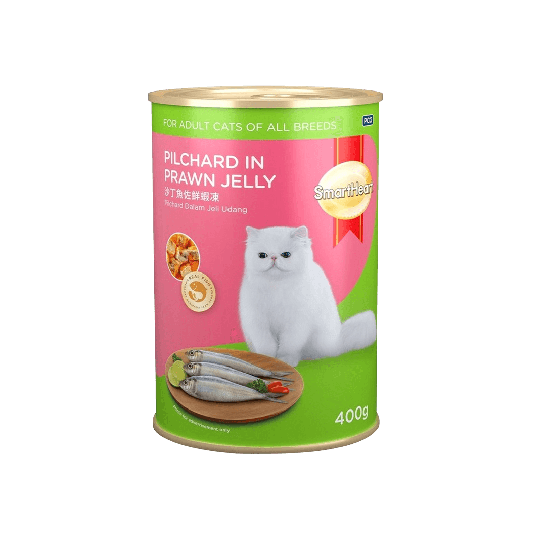 Indulge Your Feline Friend with SmartHeart Adult Canned Food Pilchard in Prawn Jelly 400g!