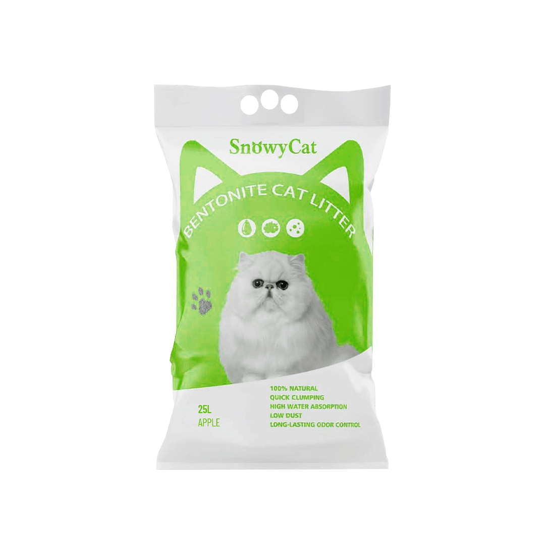 Snowycat Bentonite Cat Litter (Apple 25L) offers exceptional clumping, odor control, and long-lasting freshness. Its dust-free formula keeps your cat’s environment clean and healthy.