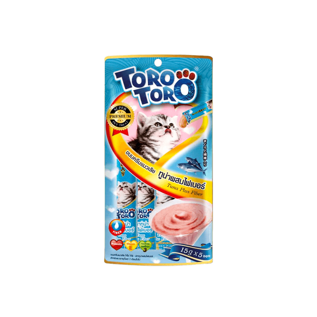 Treat your cat to Toro Toro Creamy Treat Tuna Plus Fiber?a tasty, healthy puree enriched with fiber for digestion, taurine for heart health, and omega-3 for a shiny coat.